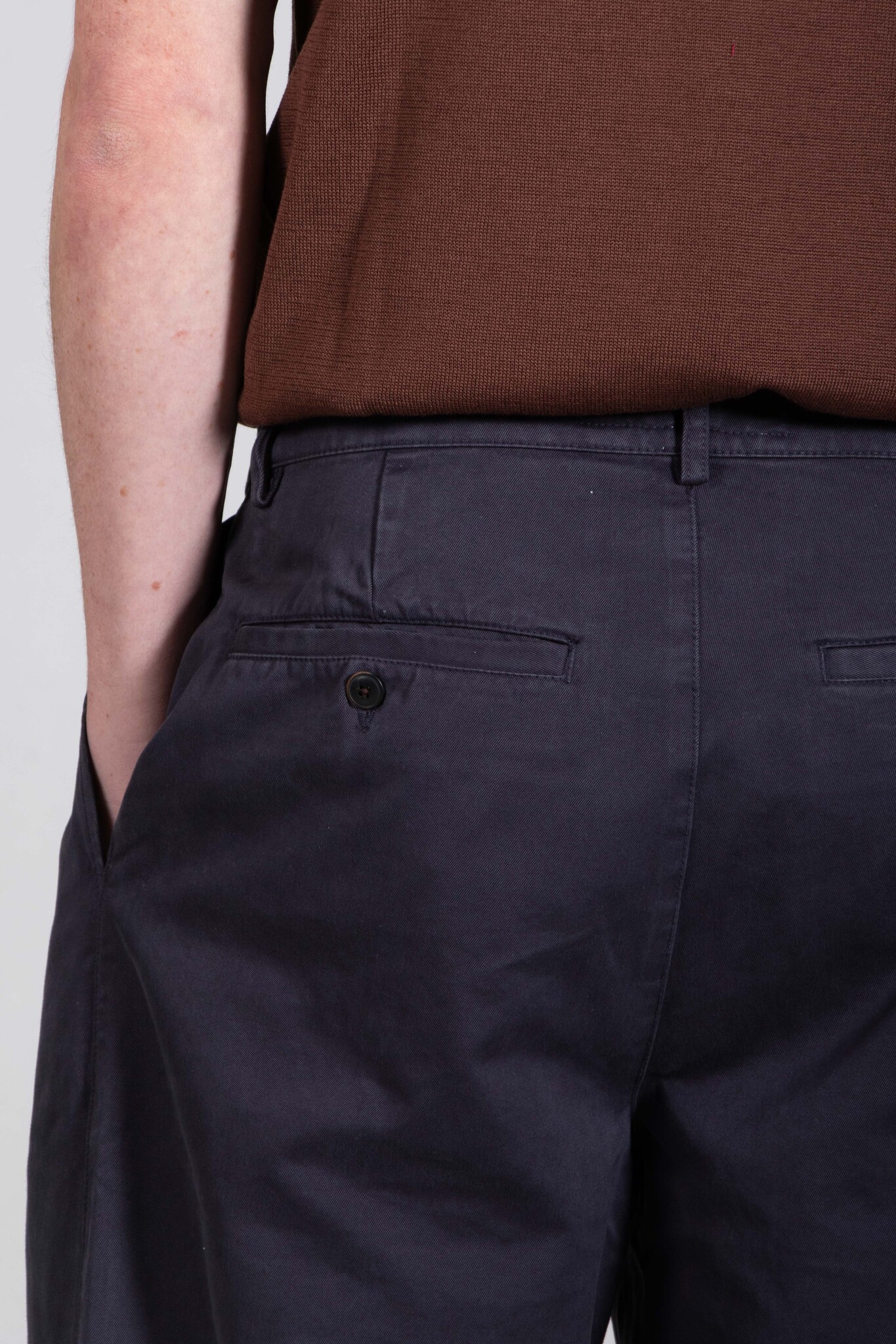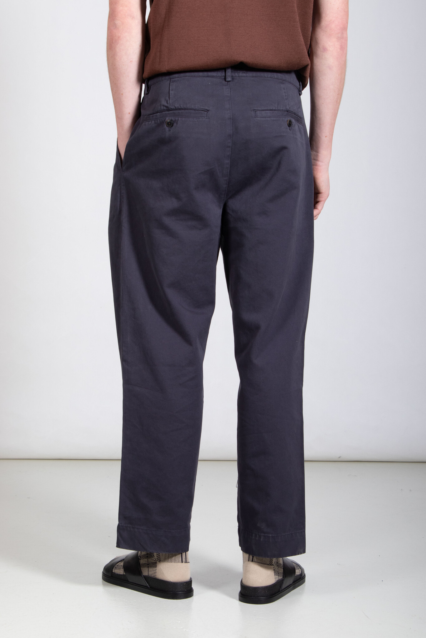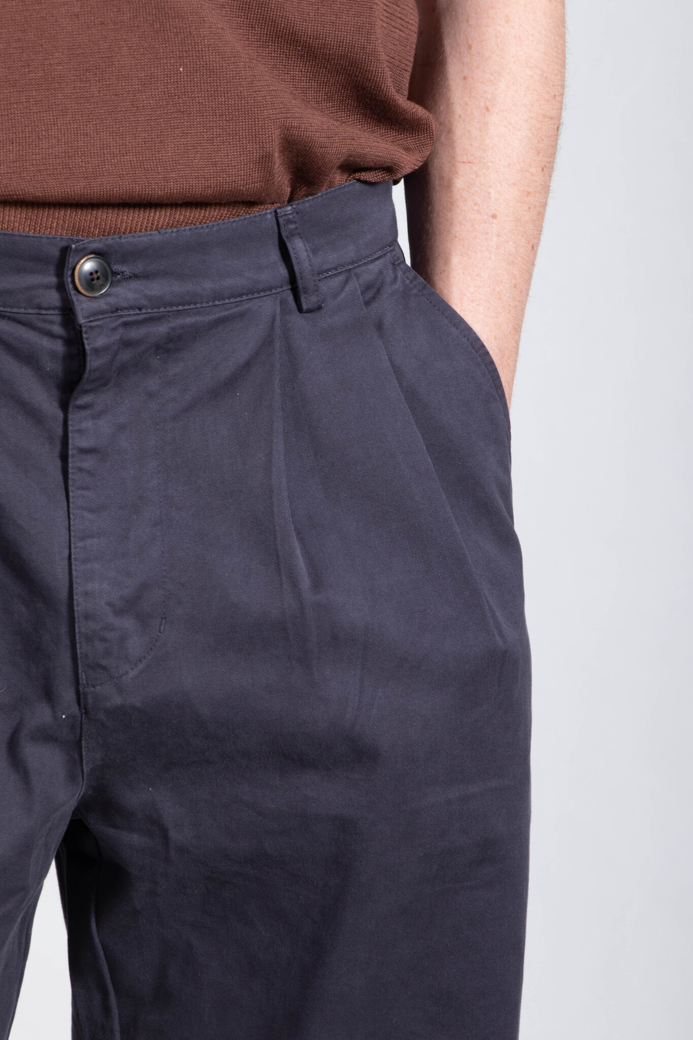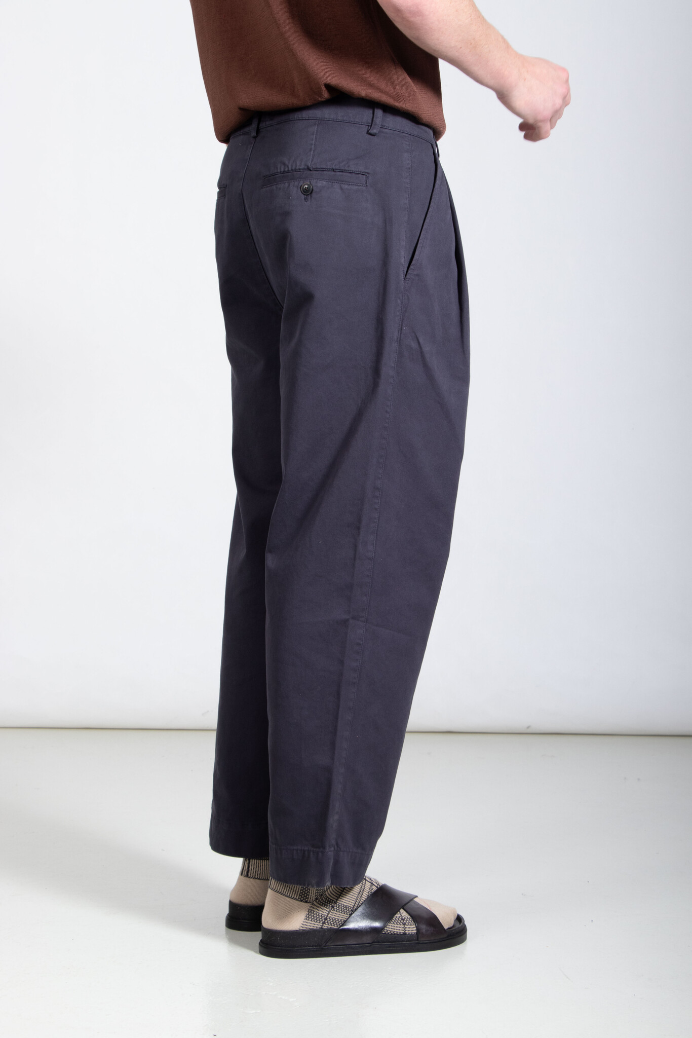 Wijde pantalon met twee bandplooien van het Franse merk Parages. De stof is gemaakt van een zeer zachte, doch stevige katoen. Ons model is 189 cm lang en draagt een maat 32. Lees meer