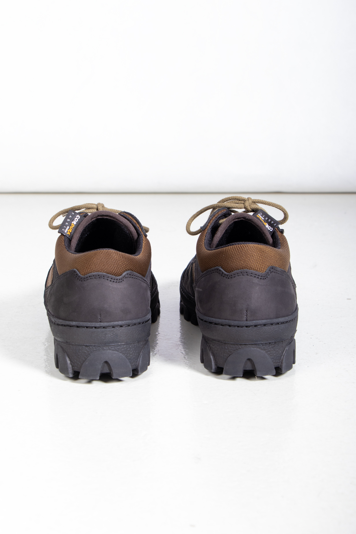 | Schoenen van het Japanse merk Reproduction of Found. Dit model is gebaseerd op een legerschoen. Dat is te merken: De schoen is voorzien van een stevige zool, en gemaakt van stug leer en Cordura-stof. Het model valt ietwat klein. | |