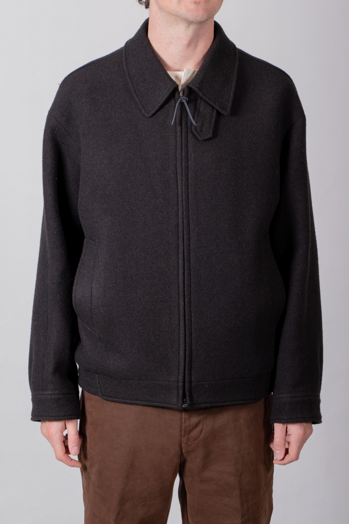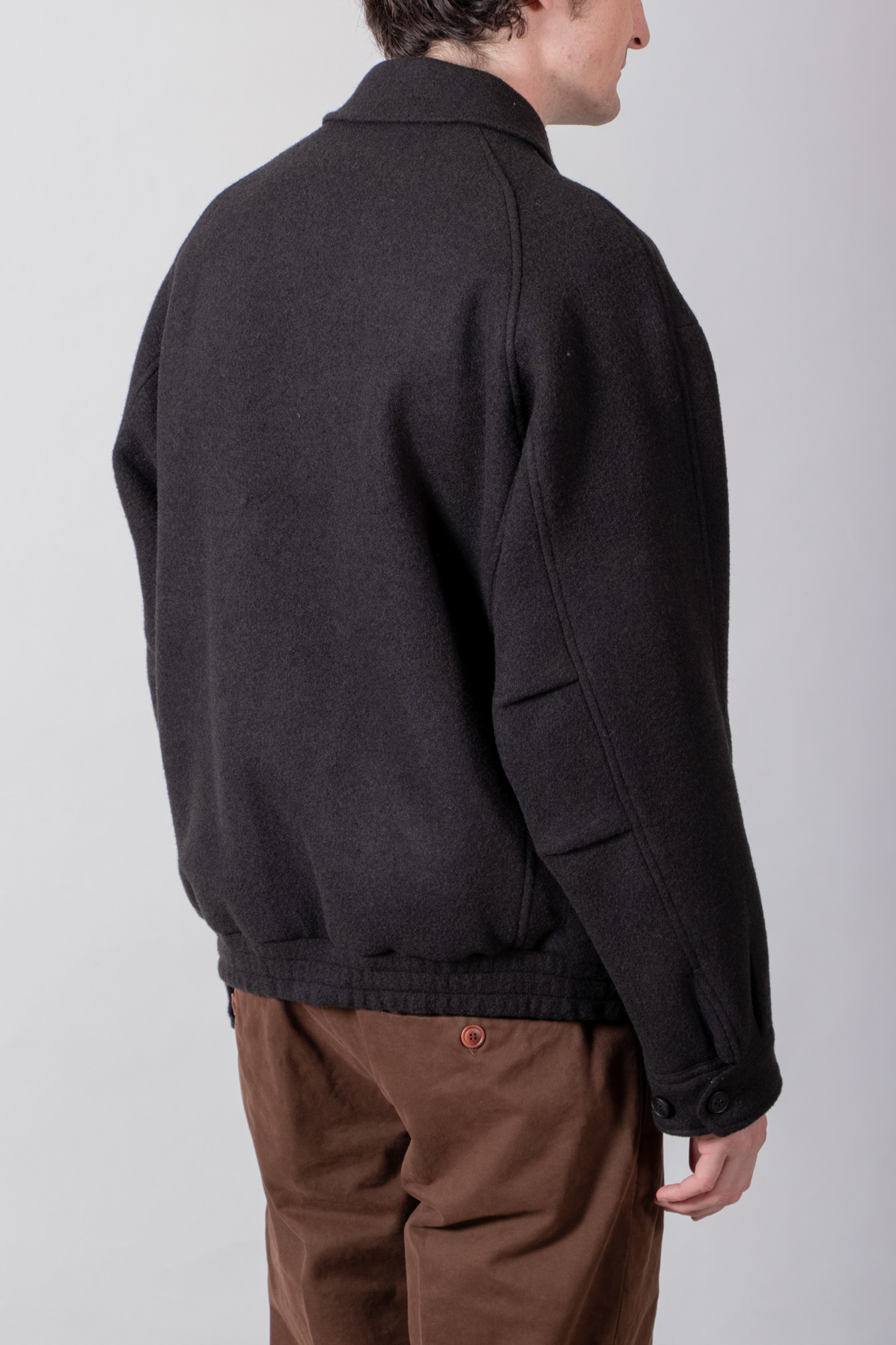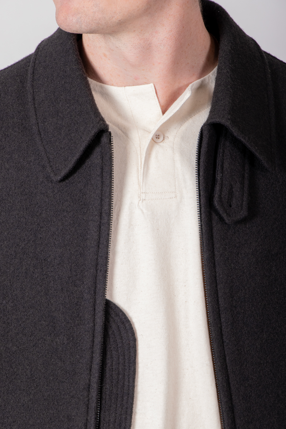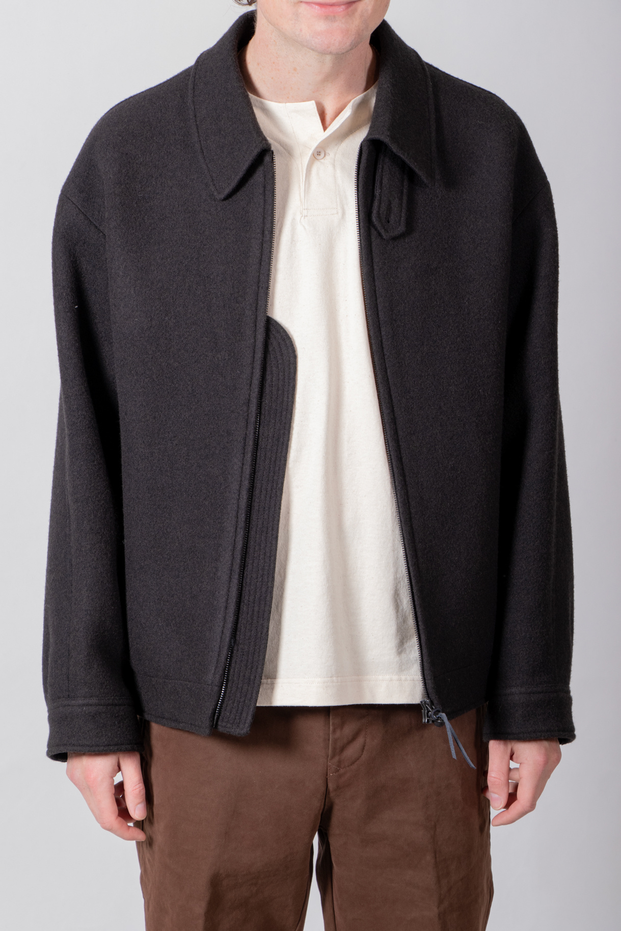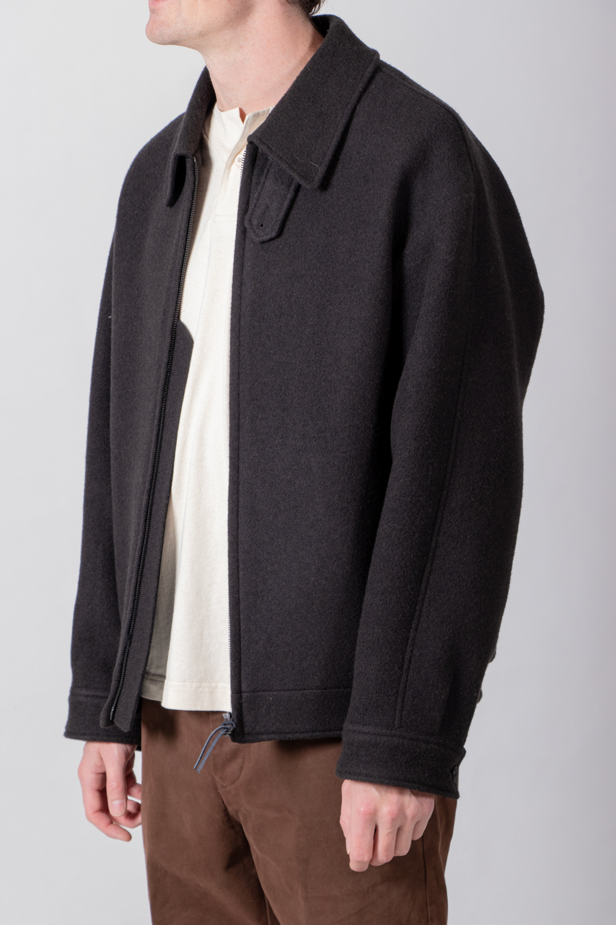 | Wollen jas van het Zuid-Koreaanse Rough Side, gevoerd met een nylon-stof. De jas is voorzien van rits, elastiek in de band, twee zakken en éen binnenzak. Ons model is 189 cm lang en draagt een maat L. | |