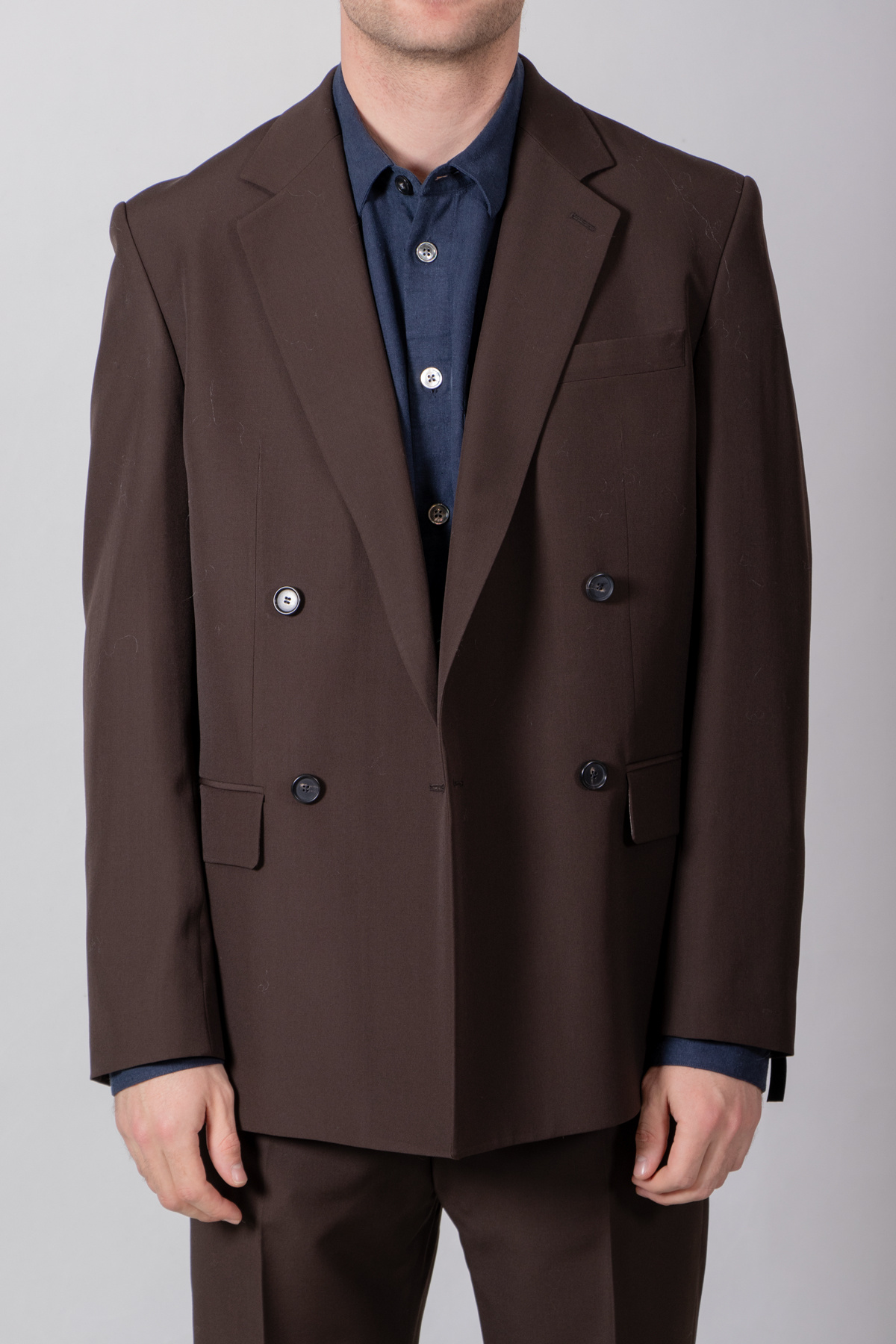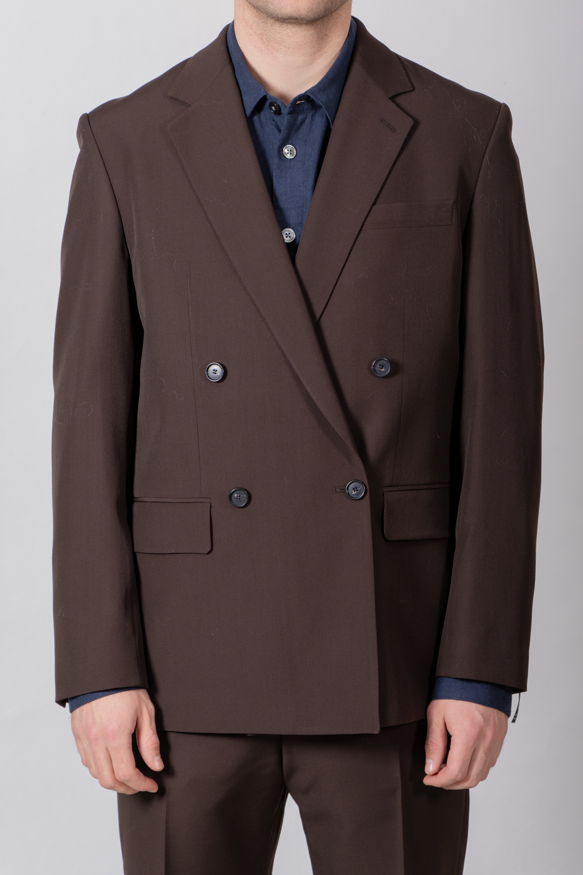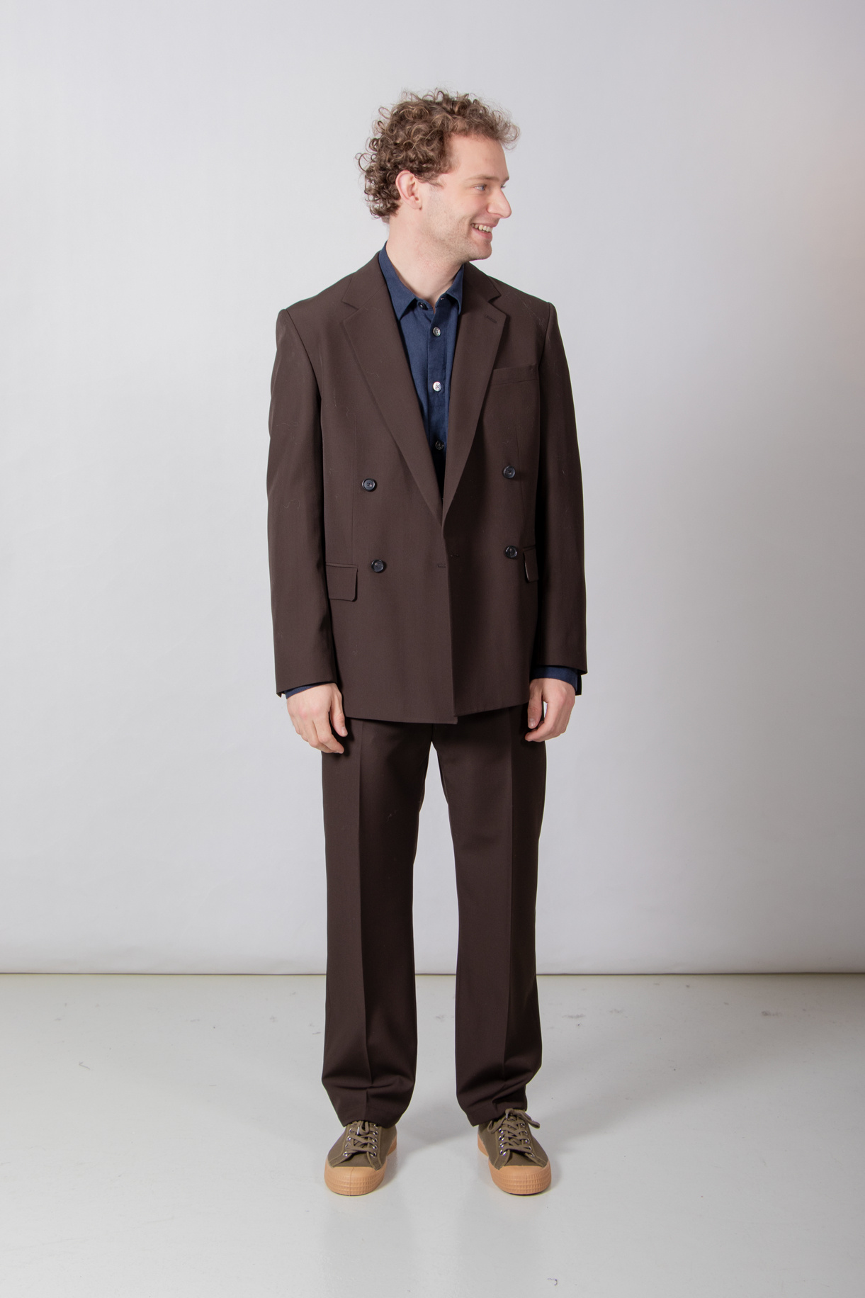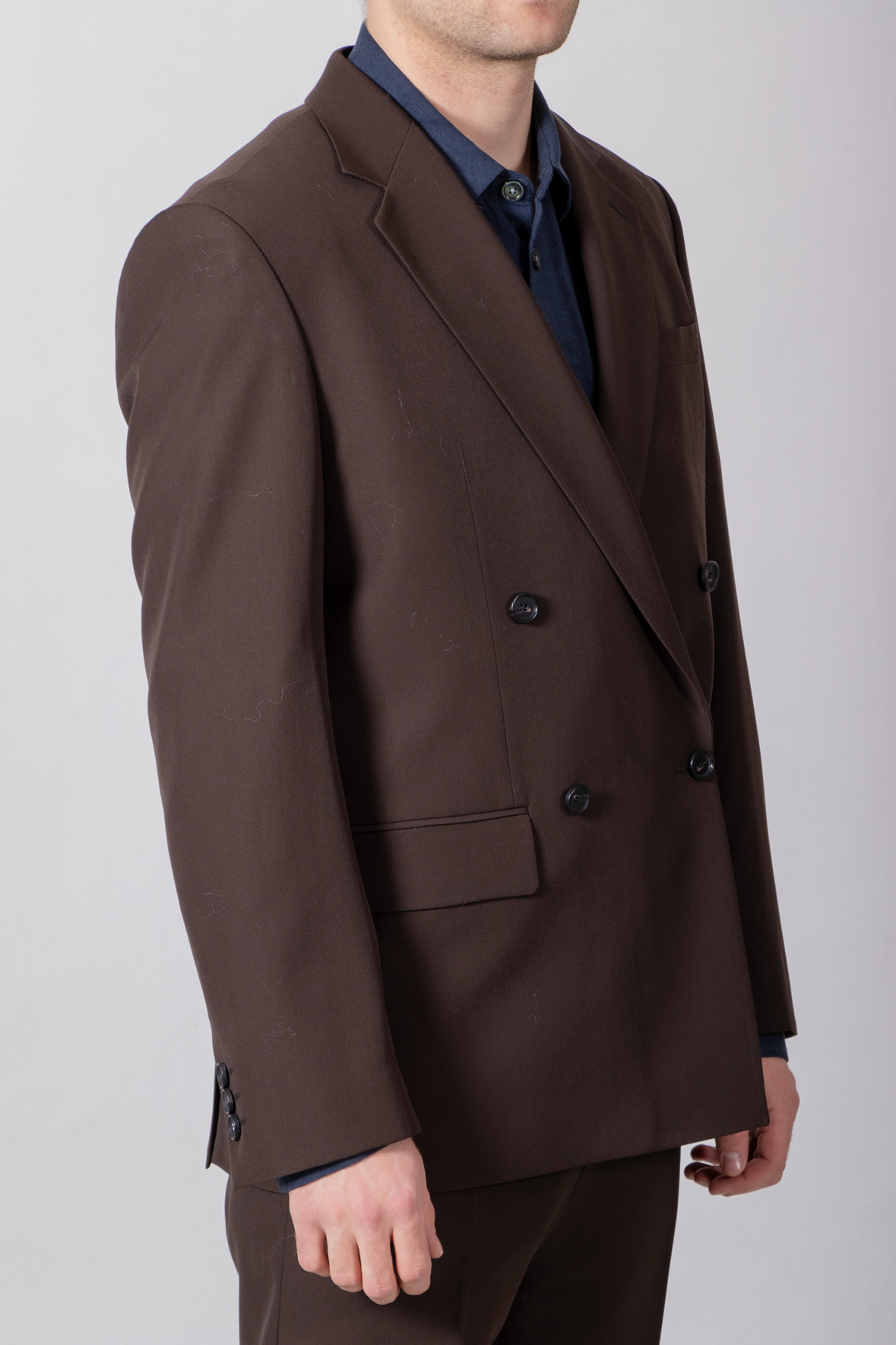 | Colbert van Strellson, gemaakt van wol. Voorzien van dubbele knoopsluiting (double-breasted). Het colbert kan gecombineerd worden met de Joe-pantalon. Ons model is 189 cm lang en draagt maat 50. | |