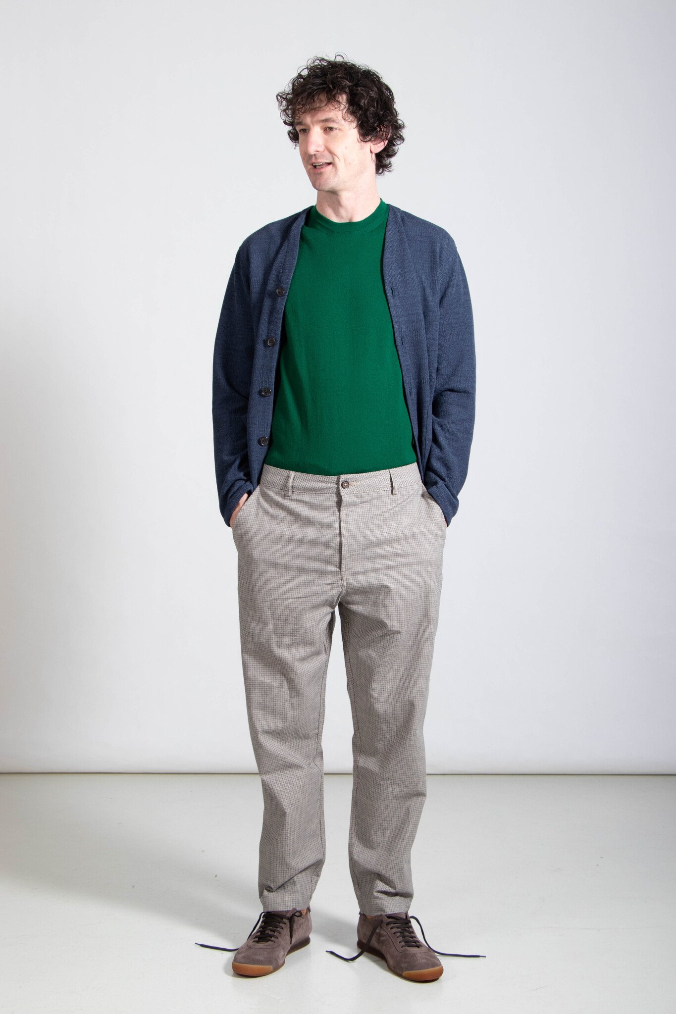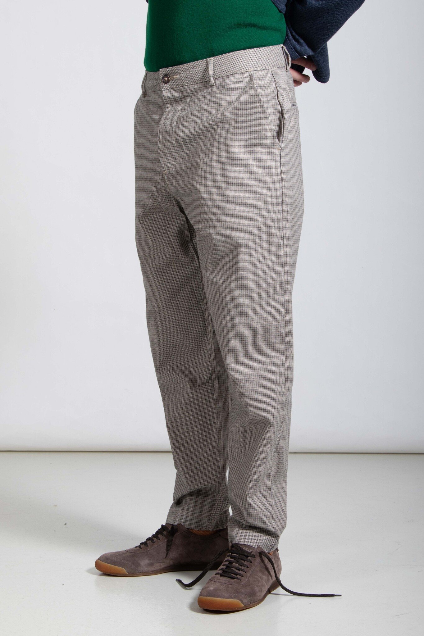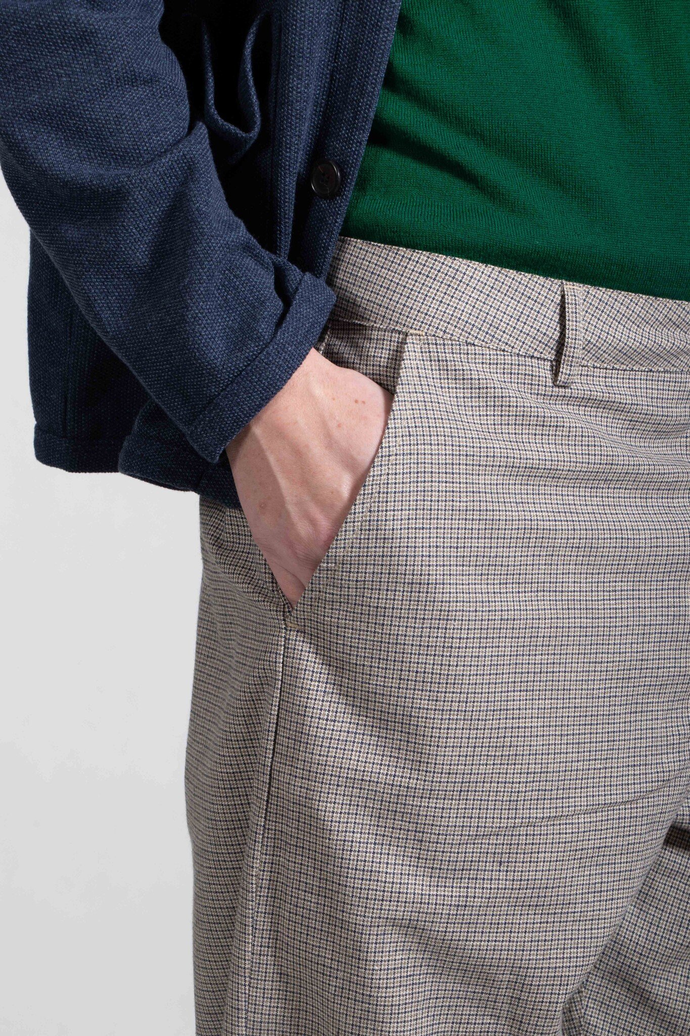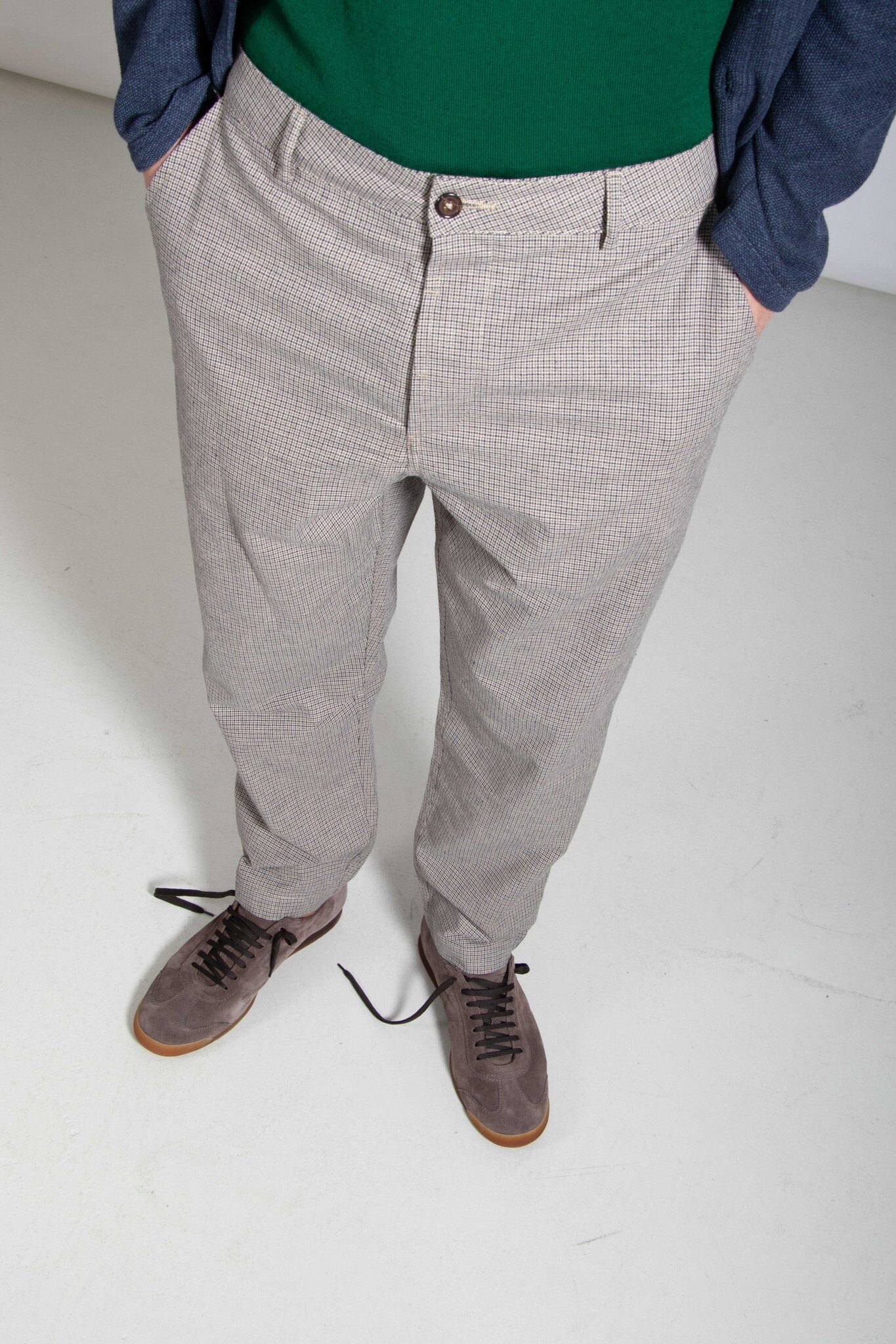 | De Military Chino, gemaakt in een klein ruitjes patroon van katoen, linnen en andere mooie stoffen. Ons model is 189 cm lang en draagt een maat 32. | |