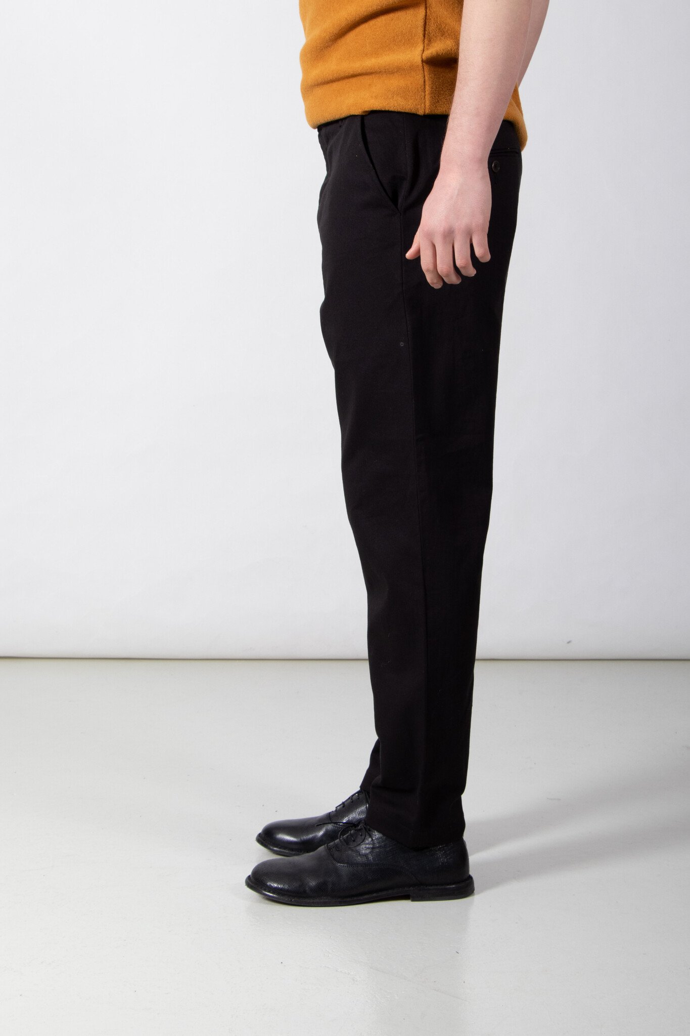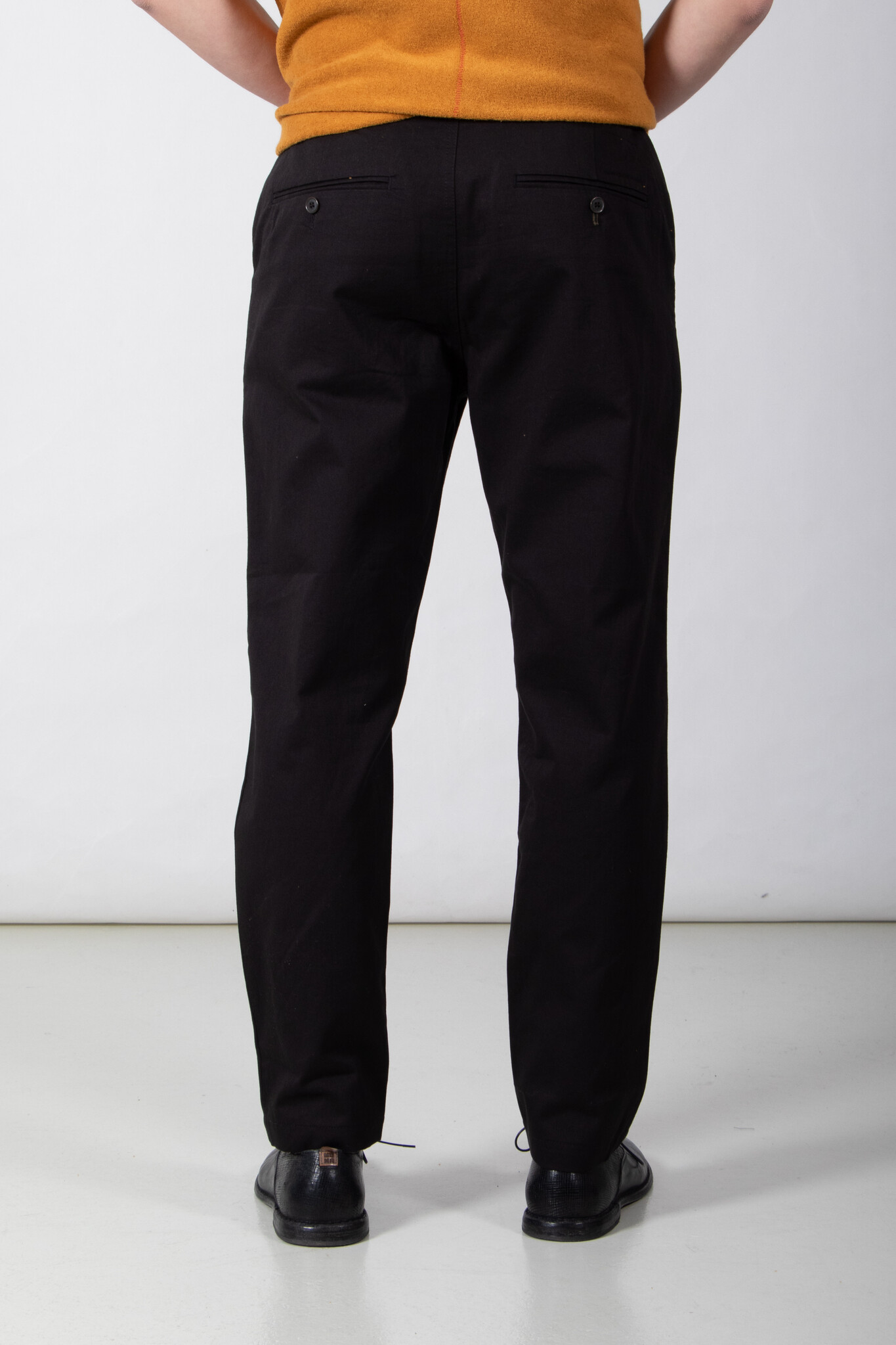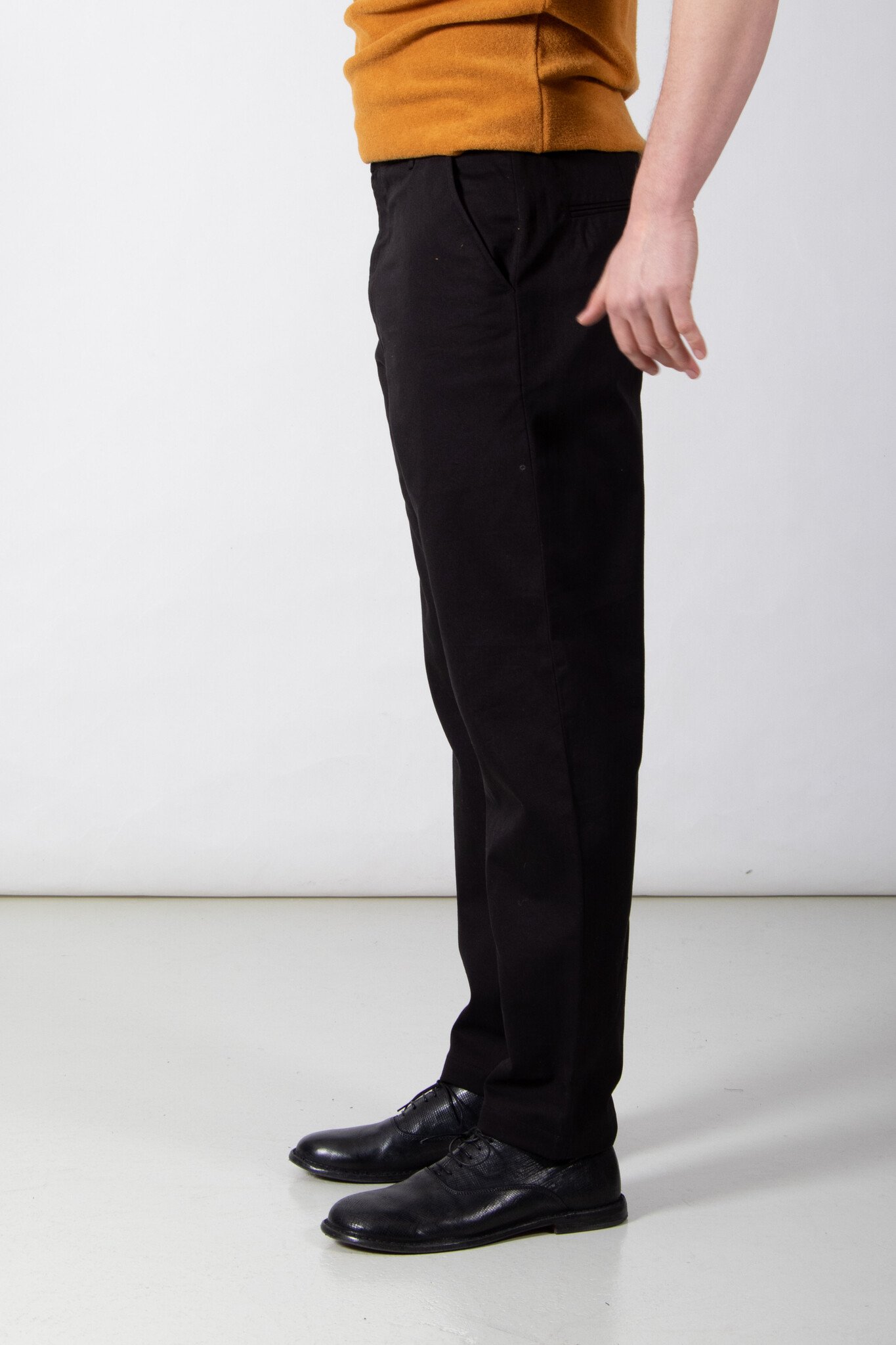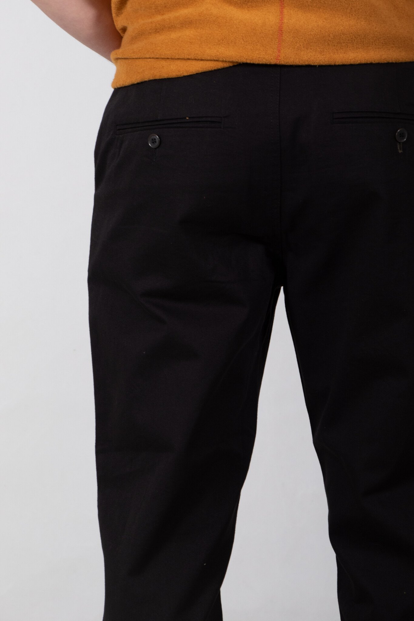 | De Military Chino van Universal Works. Wie kent hem of haar niet? Dit keer in een wat stevige katoenen stof uit Portugal. Ons model is 189 cm lang en draagt een maat 32. | |