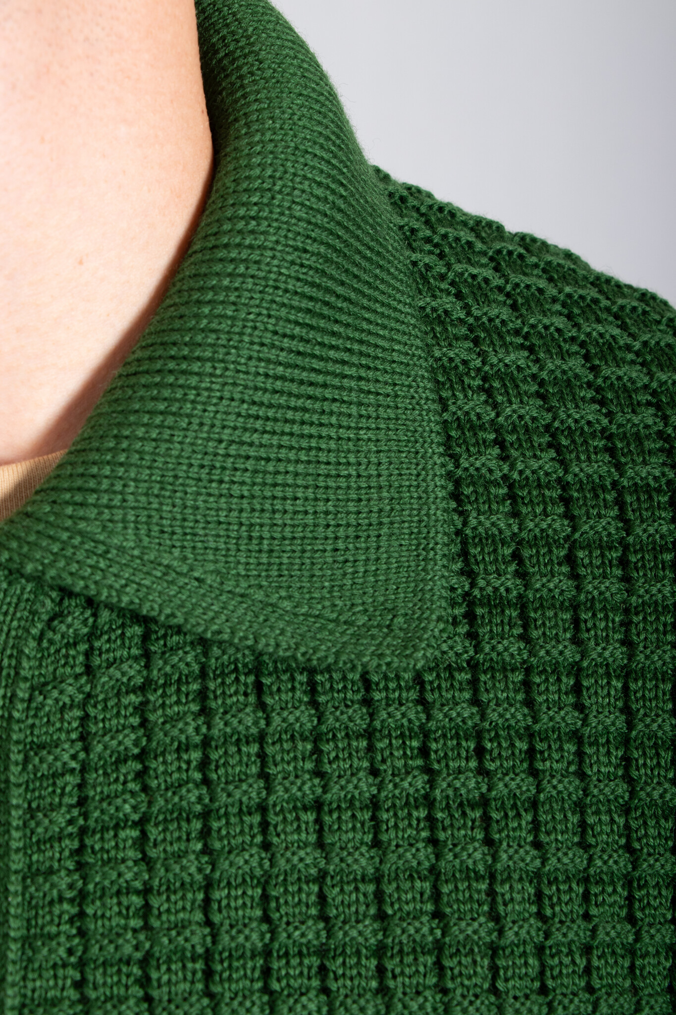 Gebreid vest van het Britse Universal Works. De stof is gebreid in wafelpatroon en gemaakt van merinowol met acryl. Ons model is 192 cm lang en draagt een maat L. Lees meer