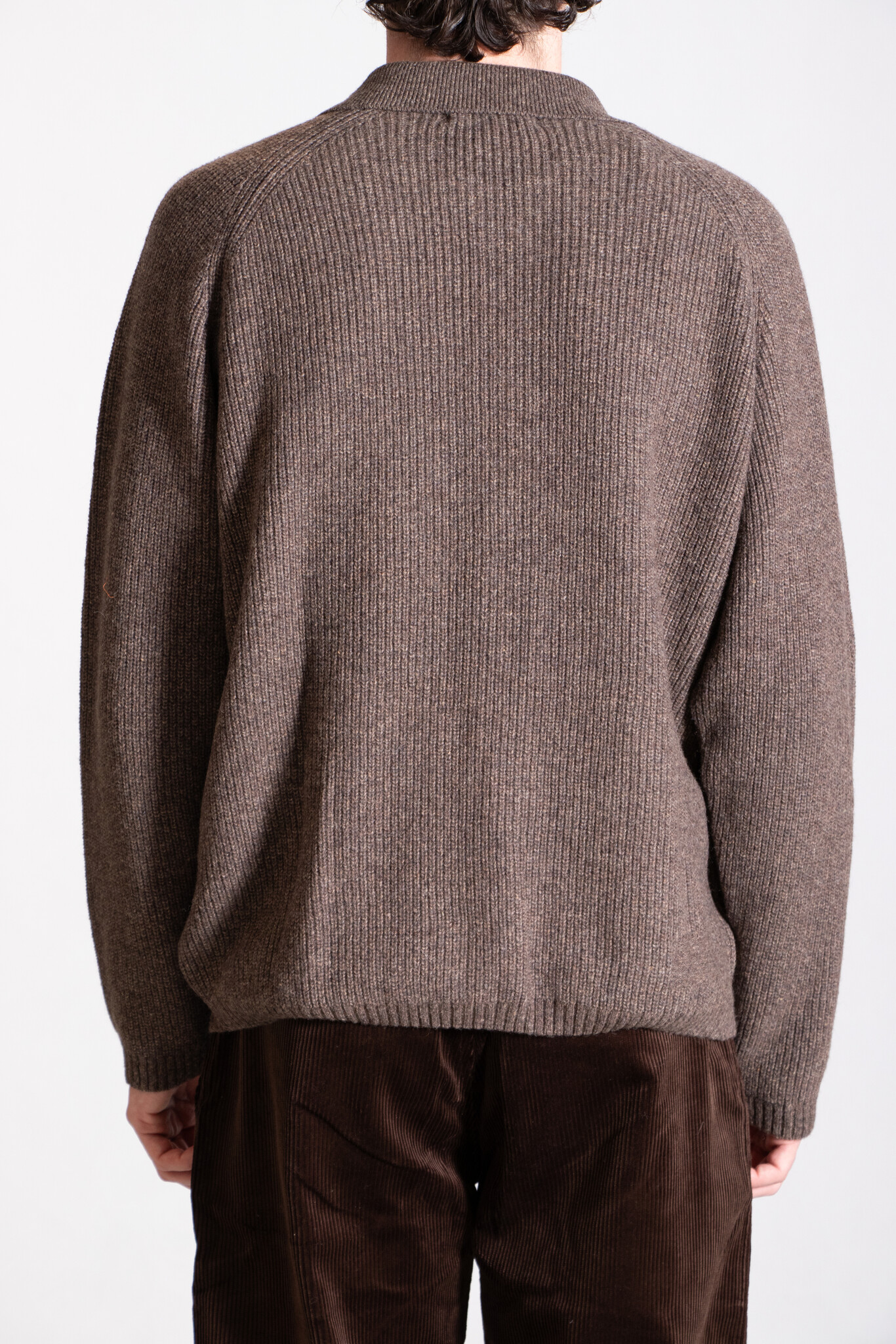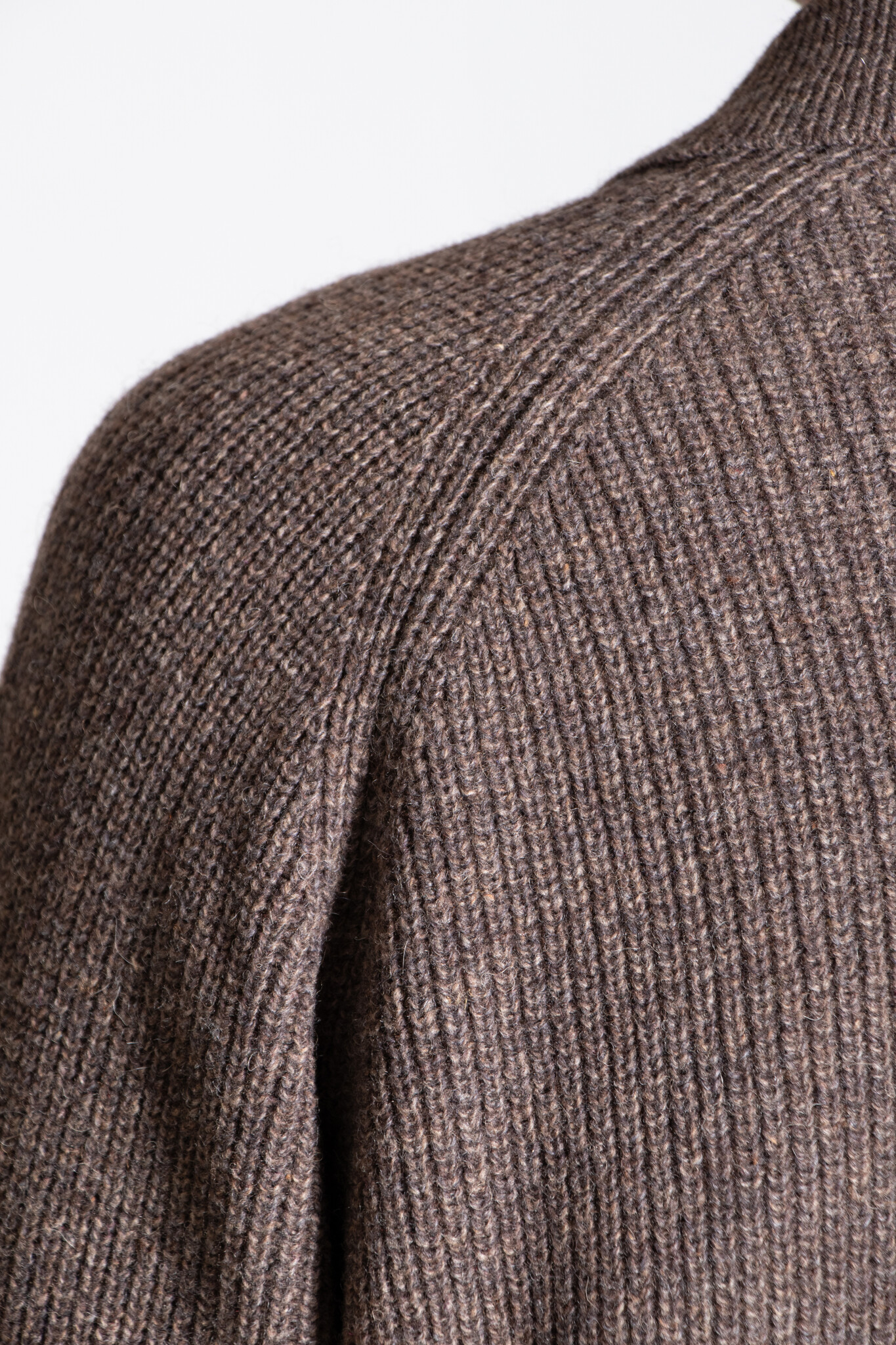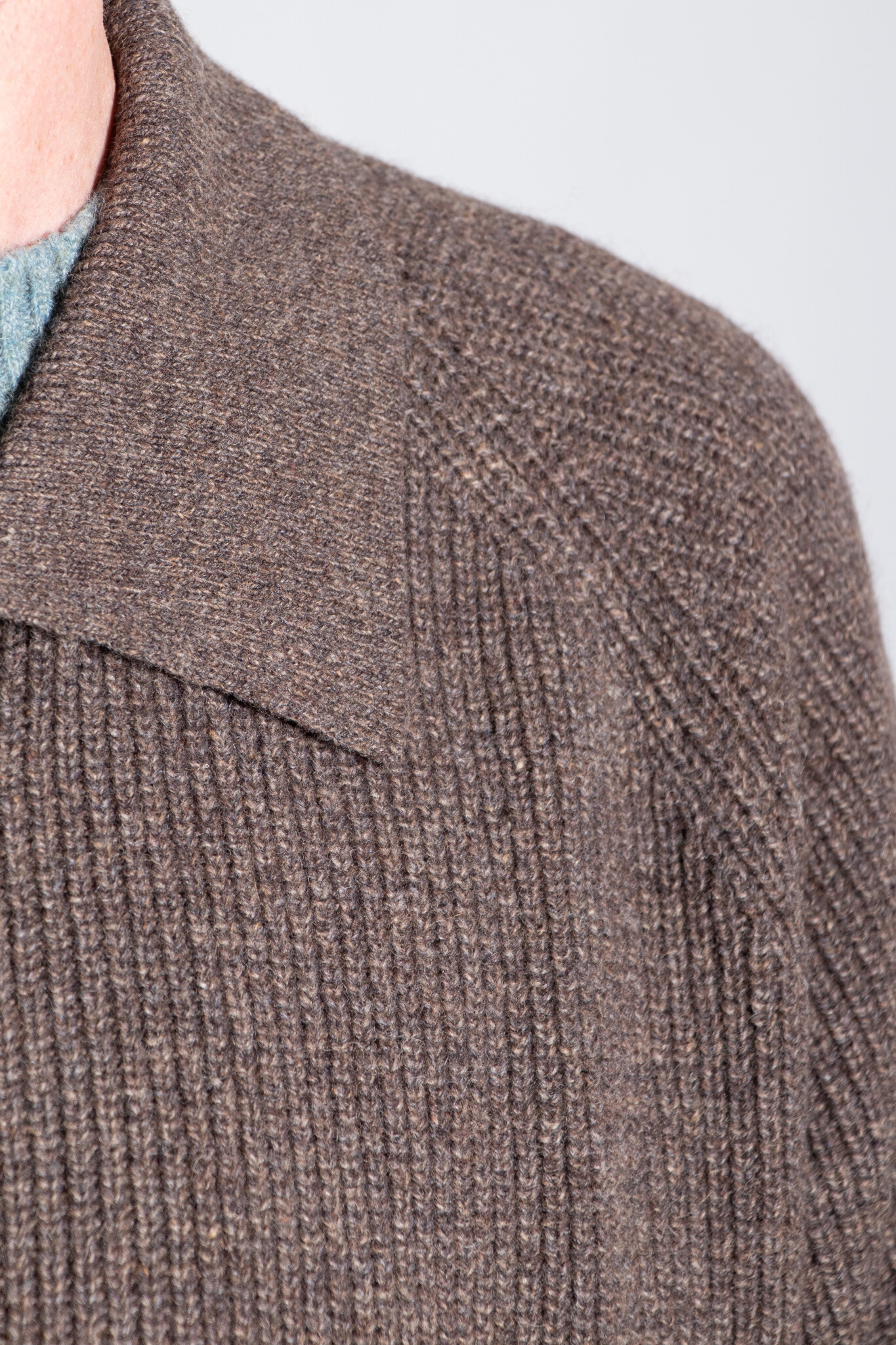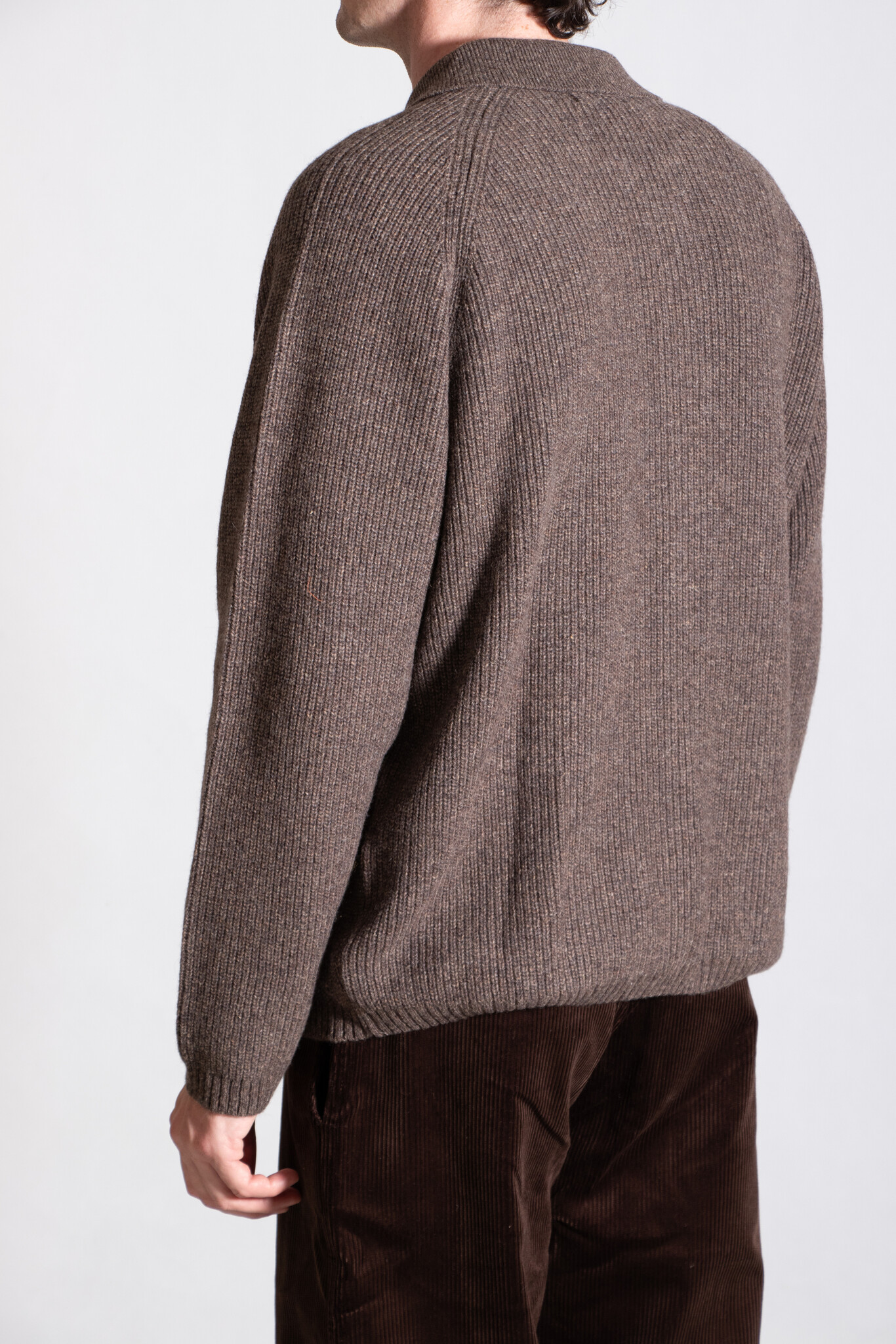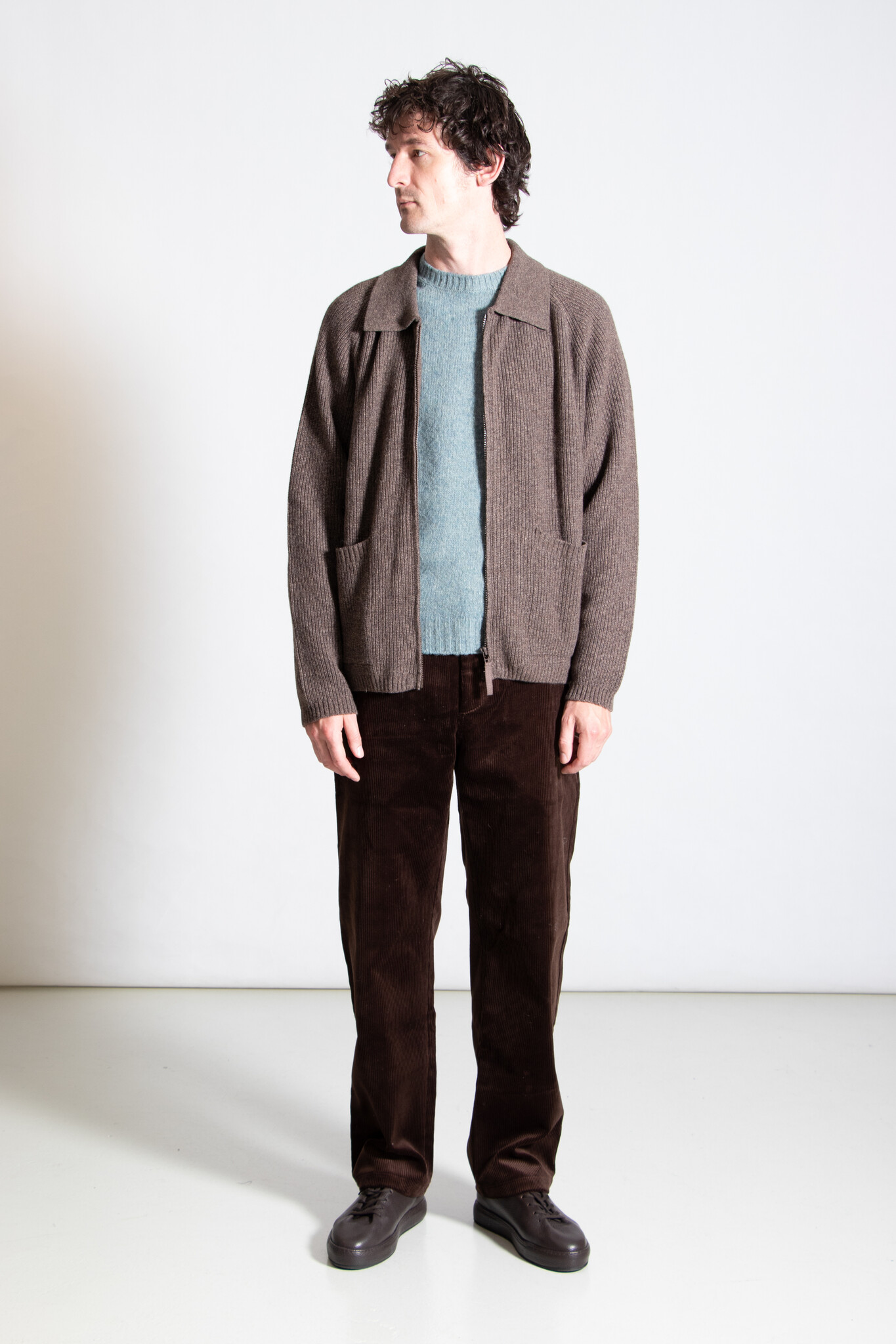A zip front, knitted jacket with a raglan sleeve, a fully-fashioned collar, and our signature two-way zip.